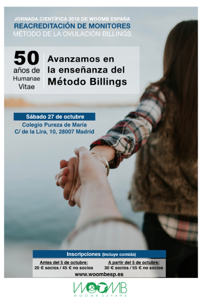 Precisamente, el próximo sábado 27 de octubre, en Madrid, la Asociación WOOMB España, única autorizada para enseñar, difundir y formar monitores del Método de la Ovulación Billings, organiza un encuentro de monitoras como parte del reciclaje anual que efectúan.