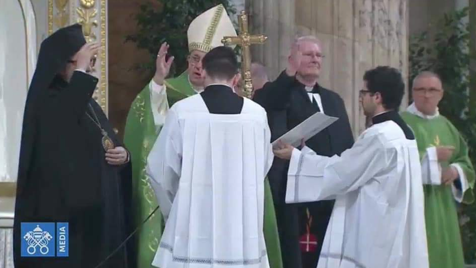 Aquí les dejamos la recentísima “bendición” del Papa; en la que un cismático oriental, y un seglar hereje luterano “co-bendicen” junto a Francisco. Nueva burla grotesca.