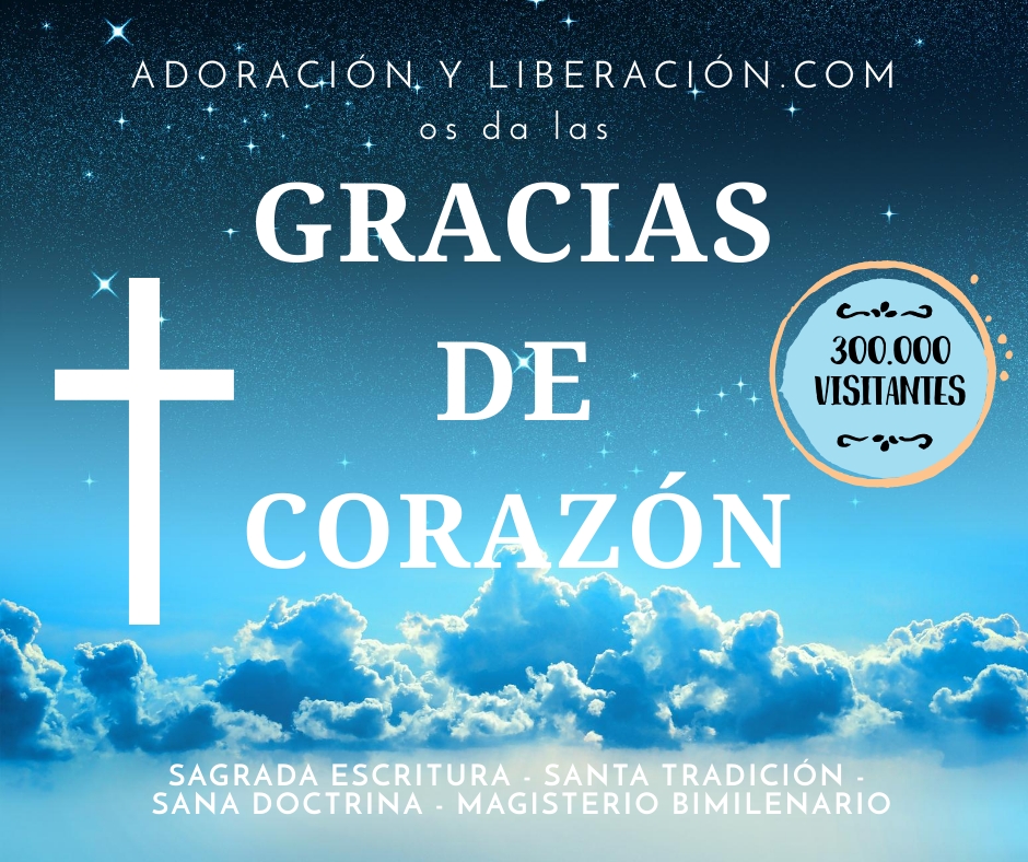 Por otra parte, también necesitamos vuestro sostén económico, por modesto que sea (¡siempre es mucho!). Adoración y Liberación es completamente gratuito; y solo podrá seguir siendo posible gracias a la colaboración de católicos comprometidos; y más teniendo en cuenta que estamos siempre siendo objeto de ataques y persecución; por los cuales nos gloriamos en Cristo, pero frente a los cuales no vamos a dejar de luchar por la Iglesia, Una, Santa, Católica y Apostólica.