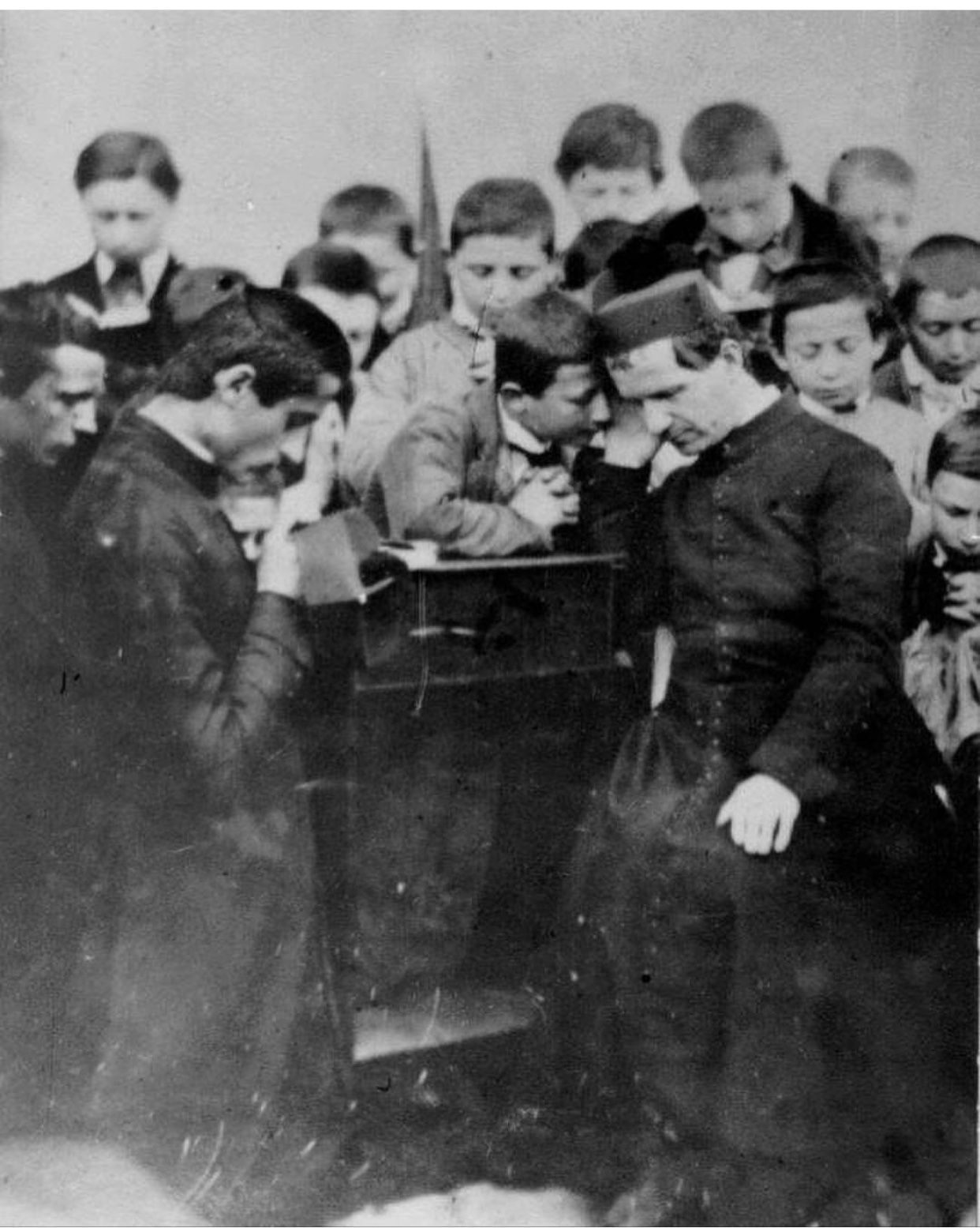 Francisco habla de la “alegría” de San Juan Bosco… Los salesianos del “sentido de fiesta”… Sí, muy bien… Pero olvidan; mejor dicho; entierran; que antes de todo eso, Don Bosco, como se ve en esta foto real de gran valor histórico, y que es toda una delicia; se dedicaba a esto:
