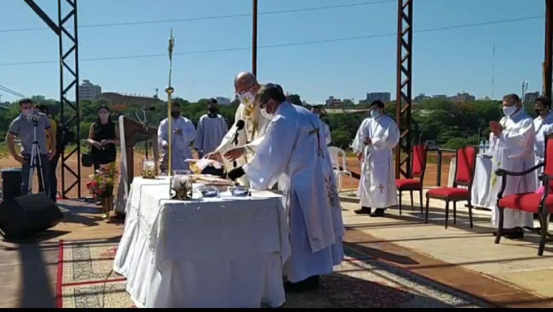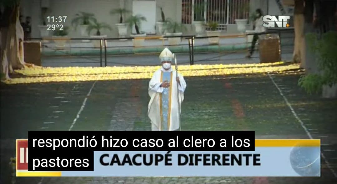 Fotografías de misa sin el pueblo de Dios (sin feligreses) en el Santuario de la Virgen de Caacupé, mayor fiesta mariana y católica del Paraguay.