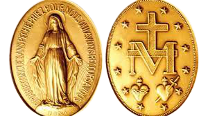 María dijo a Catalina: ” Haz acuñar una medalla según este modelo. Quiénes la lleven puesta recibirán grandes gracias, especialmente si la llevan alrededor del cuello”.