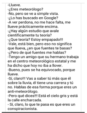– Cuando algo es verdad, no es opinable. Hemos de aprender a distinguir un hecho probado, una verdad, de algo opinable. Eso requiere tiempo y esfuerzo. Así que,