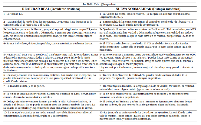 Todos estos apuntes definen una sola e indivisible intención: destruir nuestra cultura y raíces para transformar la realidad en otra virtual que aunque no tiene entidad (ni podrá nunca tenerla), será real en sus efectos y por tanto útil a sus objetivos. En algunos conceptos se redunda en uno u otro apartado. Disculpen por ello, es en aras de abundar en distintos matices o aspectos.