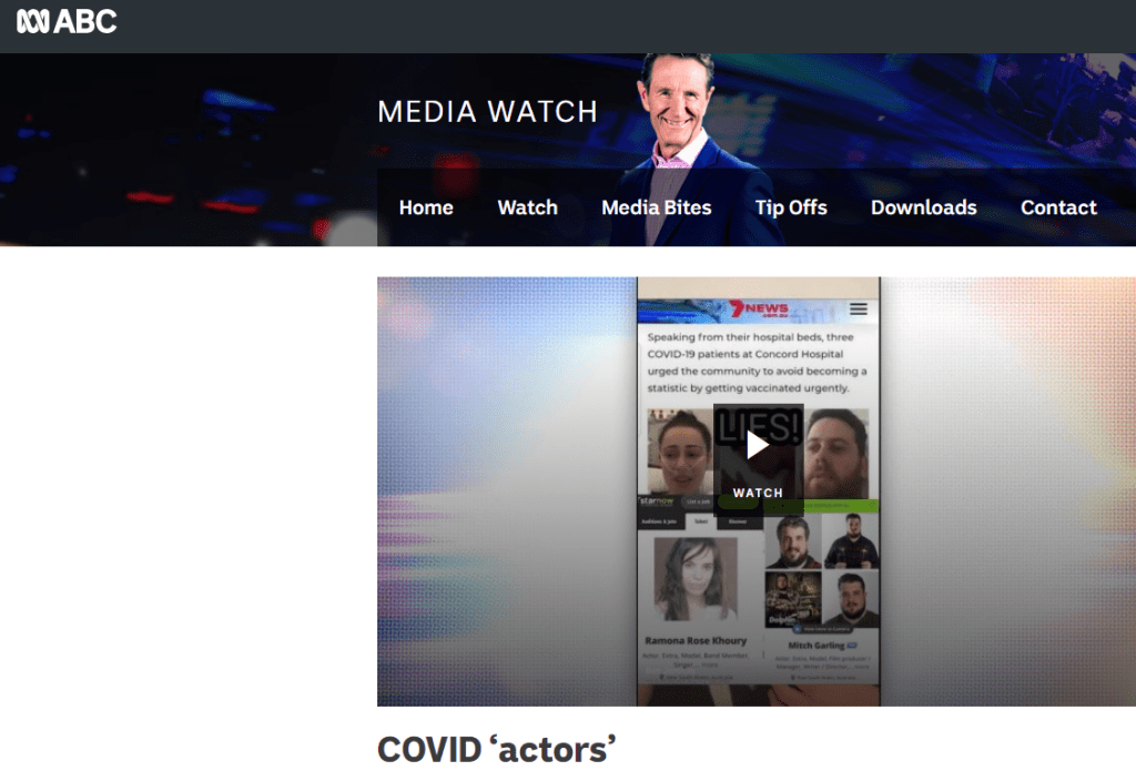 Media Watch, un programa de televisión de ABC Australia, descubrió un escándalo en varios informes de noticias que presentaban pacientes supuestamente ‘enfermos’ con COVID en los hospitales. ¡Resulta que todos son actores de crisis!