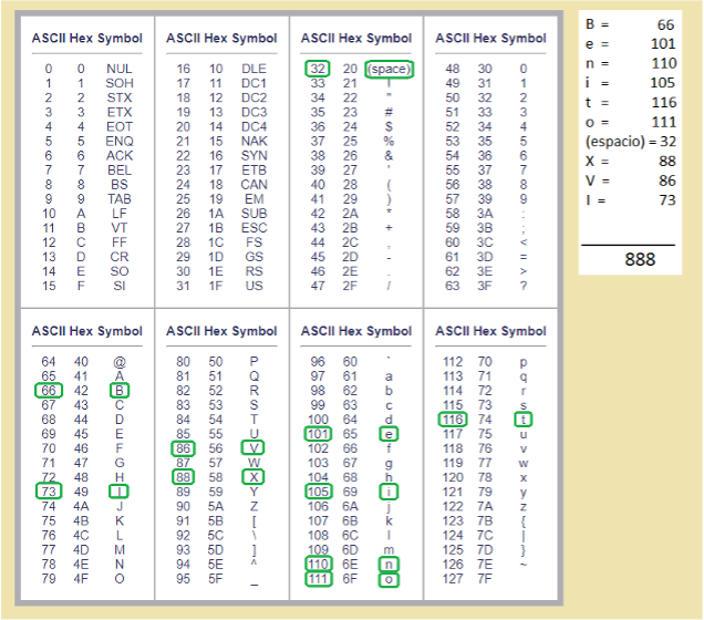 (*1) ASCII (acrónimo inglés de American Standard Code for Information Interchange —Código Estándar estadounidense para el Intercambio de Información—) es un código universal de caracteres utilizado por las computadoras basado en el alfabeto latino y creado en 1963 por el Comité Estadounidense de Estándares (ANSI) como una evolución de los conjuntos de códigos utilizados en aquel entonces en telegrafía. Como las computadoras únicamente entienden números, el código ASCII es un método de traducción de letras y símbolos a números como ‘a=97’, ‘B=66’ o ‘/=47’, de tal manera que todos los dispositivos electrónicos utilicen los mismos códigos y se puedan entender entre sí. En casi cualquier libro de informática y en multitud de páginas web es común encontrar la tabla ASCII para consultarla de tal manera que los usuarios puedan utilizar los códigos numéricos para poder escribir con el teclado de un ordenador determinados símbolos que no están directamente disponibles en las teclas. Por ejemplo, en la web codigoascii.org se puede consultar la tabla, en la que se puede comprobar que la letra ñ minúscula se puede escribir con el código 164 (para lo cuál hay que pulsar la tecla ALT y los números 1, 6 y 4 en el teclado del ordenador), lo cuál es especialmente útil en un teclado británico que no tiene ninguna tecla con dicha letra.