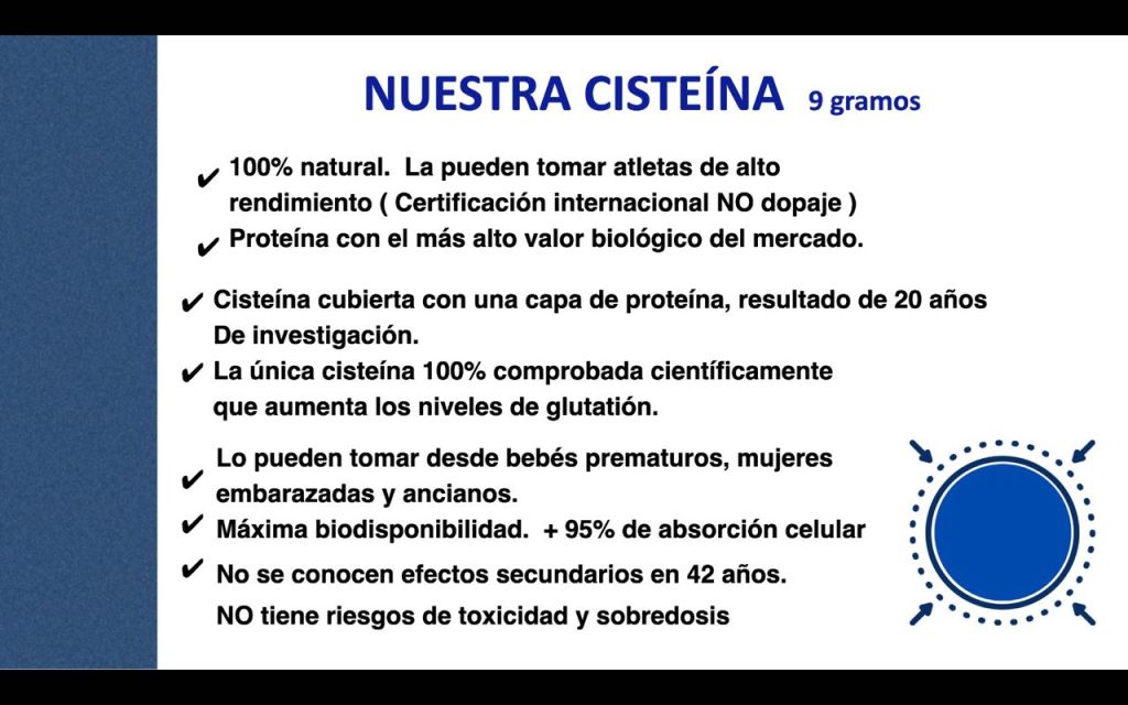 Al proteger la cisteína en una bola de proteína, esto permite que la cisteína llegue a la célula, pase a través de la célula y esté disponible para la producción de glutatión.
