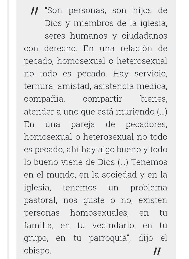 Esto declaró monseñor Salazar. También manifestó como Francisco ha sido atacado recientemente, por el tema de las uniones de parejas en situación irregular.