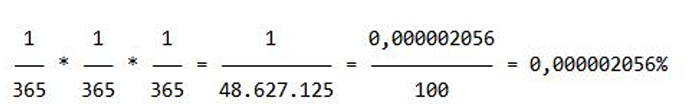 Considerando soltanto gli eventi A), B) e C), la probabilità che si dia per semplice caso l’impressionante coincidenza che la data scaturita da questi numeri ascoltati corrisponda al 30 aprile 2023 si calcola nel modo seguente: