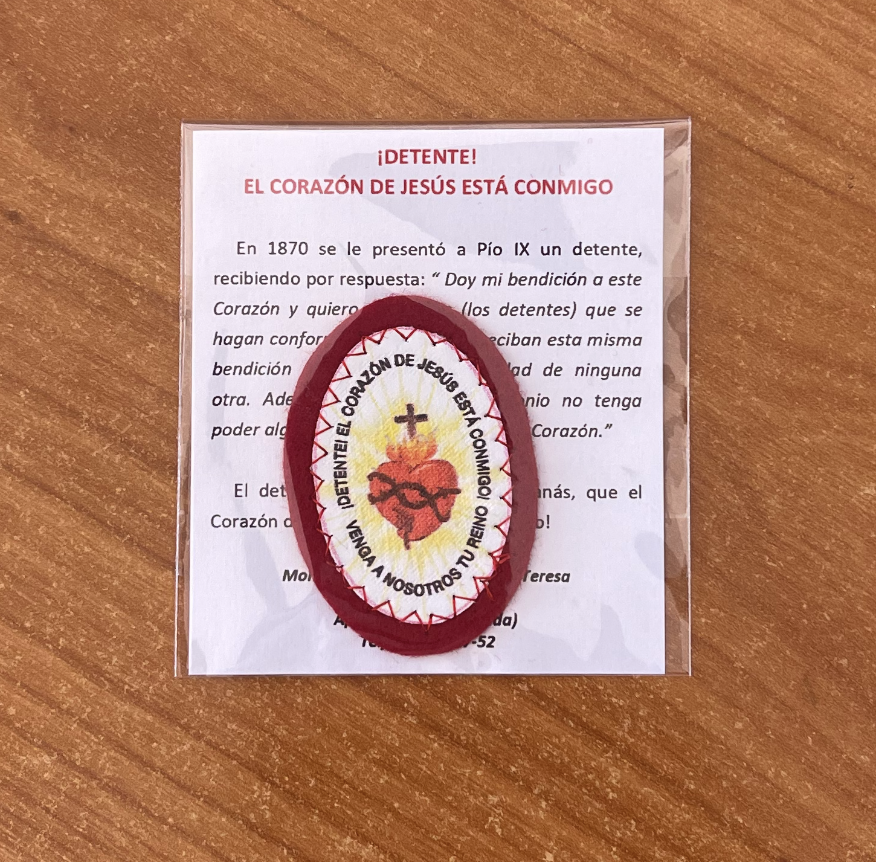 El Detente significa: ¡Detente Satanás, tentación, pasión, peligro, enemistad, tristeza, penas, infierno… que el Corazón de Jesús, mi Dios, mi redentor, mi amor, mi esperanza, mi TODO está conmigo!