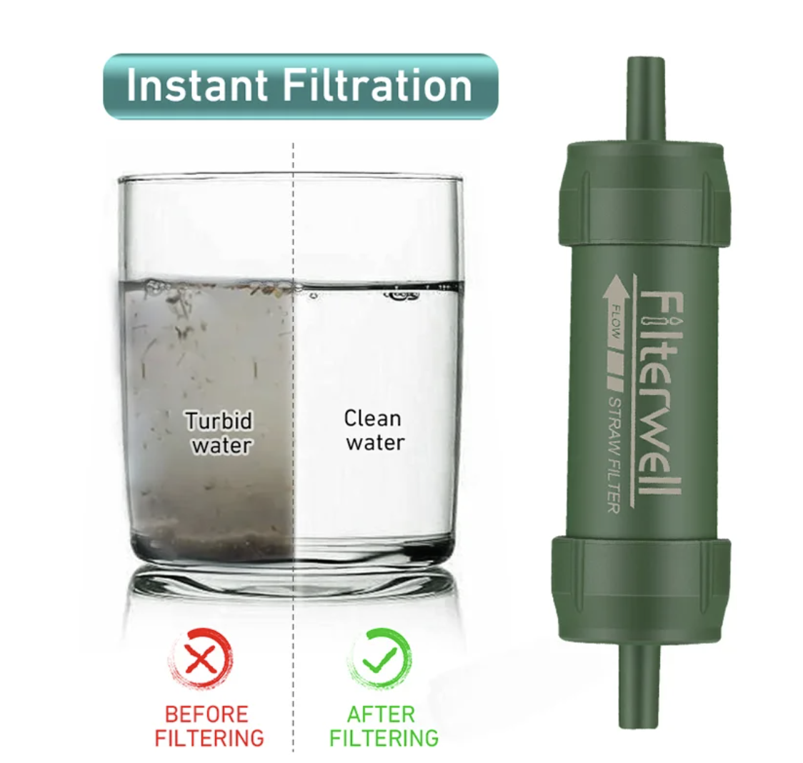 Filtro de agua Purificador Portátil para situaciones de supervivencia o emergencia: Descubre la tranquilidad de estar siempre preparado: este filtro de agua portátil es tu aliado imprescindible para cualquier escenario de emergencia, acampada, senderismo o situaciones extremas.